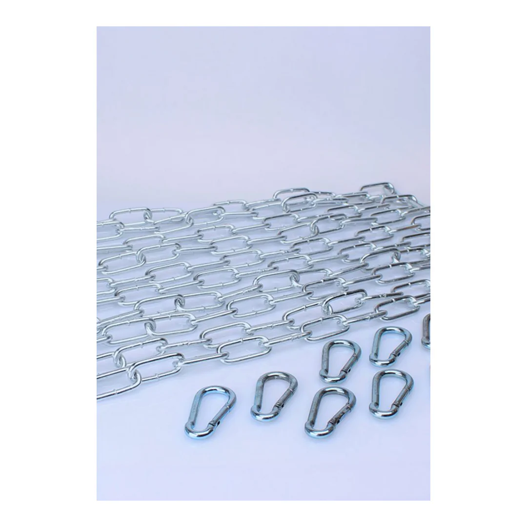 Este kit de eslingas incluye: 5 Cadenas de acero cromado de 1m10 que soportan 120 Kg / 10 Mosquetones de acero cromado que también soportan los 120kg Ideal para colgar la eslinga y crear un verdadero PlayRoom emocionante...